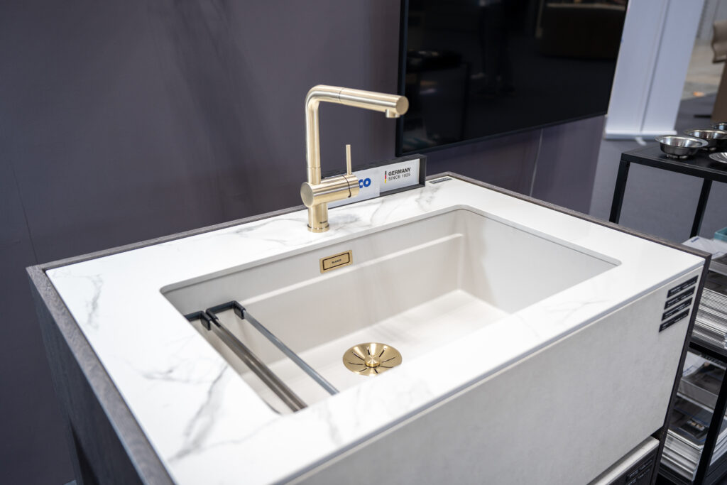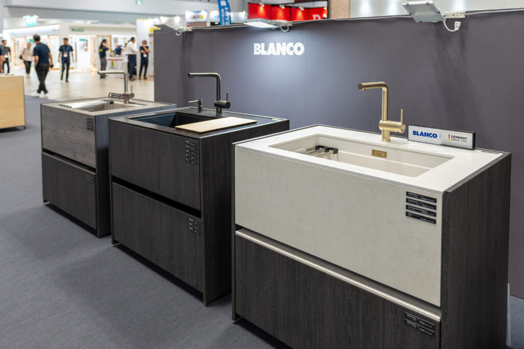 また、Kitchen Worldには多くのキッチンメーカー様が出展されていましたが、嬉しいことにBLANCOのシンク&水栓を展示キッチンに選んでくださったメーカー様が多数いらっしゃいました。